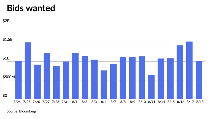 Blowing past the mid-way point of August behind, “munis continue to struggle for the most part as many take their summer vacations,” said Jason Wong, vice president of municipals at AmeriVet Securities.