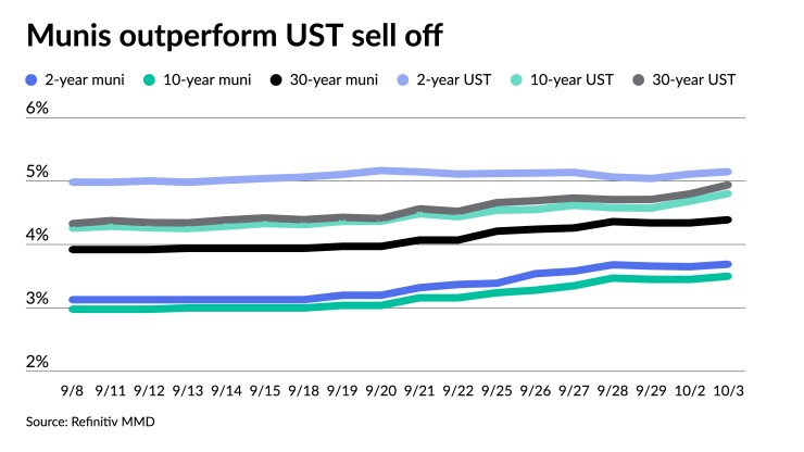 Triple-A yield curves in September rose 45 to 53 basis points, according to Refinitiv MMD.
