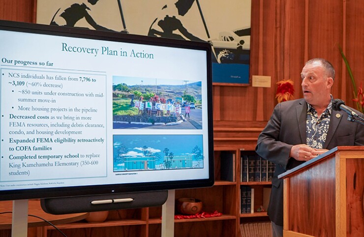Hawaii Gov. Josh Green claims the state is making headway toward reducing recovery costs by getting people displaced by fires out of hotels and into permanent housing.