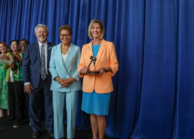 Los Angeles Mayor Karen Bass handed off the gavel and her title as Metro chair to Los Angeles County Supervisor Janice Hahn during Wednesday’s event held at Union Station in downtown Los Angeles. The lead role is held for one year by members of the board on a rotating basis.