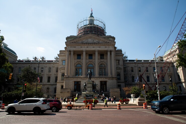 The Indiana Statehouse in Indianapolis earlier this month. The state’s property tax reform law has raised questions about local income tax-backed debt.